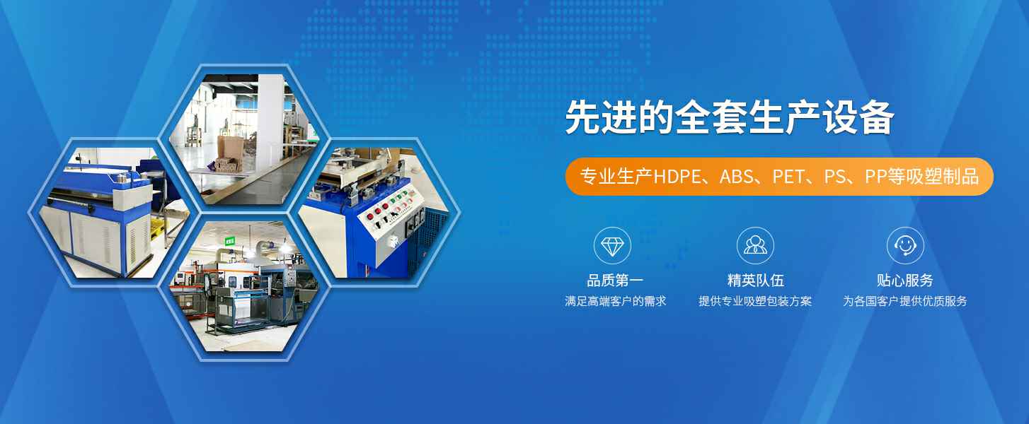 公司从事各类包装材料的生产,成型及手工加工等。我司专业生产HDPE、ABS、PET、PS、PP等各种材质的厚片及薄片吸塑制品。